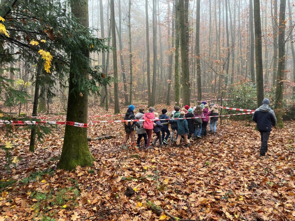 Nachdem Frau Ortmann die versammelte Schulgemeinde begrüßt hatte, setzte sich der Laternenzug um 17.00 Uhr in Bewegung. Angeführt und abgesichert vom Schulelternbeirat schlossen sich Kinder und Erwachsene zu einer langen Kette aus Lichtern zusammen und zogen durch die Straßen, über den Sandbach und durch den Wald zurück zur Schule. Zwischendurch wurden immer wieder Laternenlieder gesungen: „Ich geh‘ mit meiner Laterne“, „Kommt wir woll’n Laterne laufen“, „Laterne, Laterne“, „Durch die Straßen auf und nieder“, „Sankt Martin“.